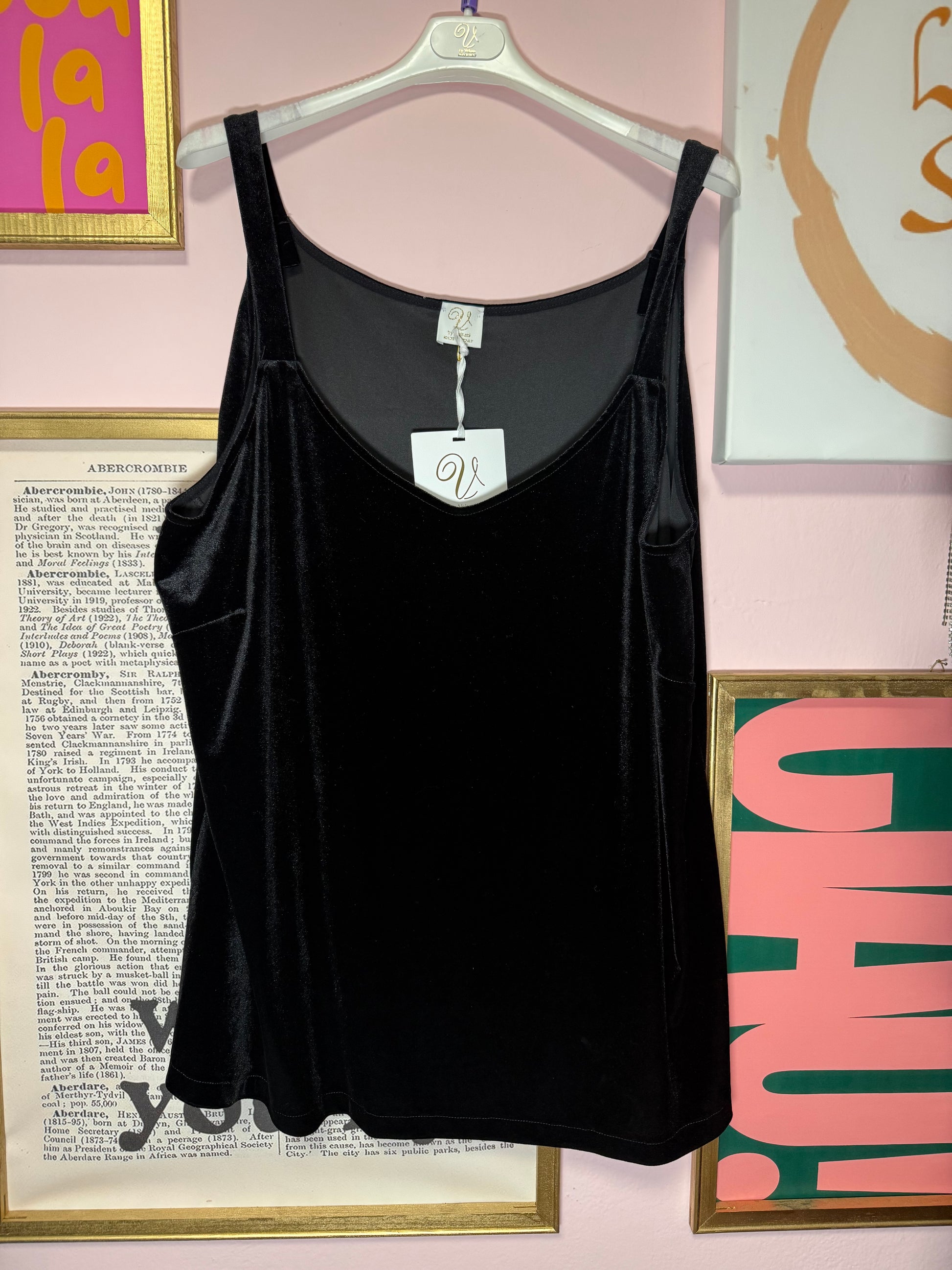 Canotta velluto taglio trapezio, Made in Italy. Nero